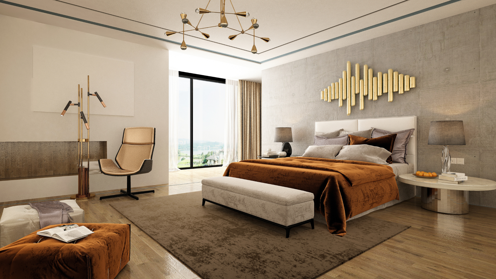 In apartments with higher ceilings, shorter headboards can feel visually lost.