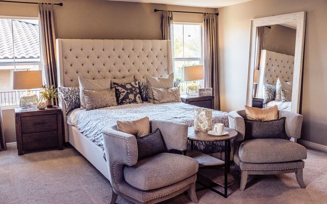 While neutrals work best as a base, accent colors can enhance your bedroom’s personality.